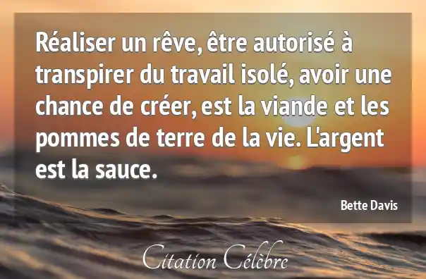 Réaliser un rêve, être autorisé à transpirer du travail isolé, avoir une chance de créer, est la viande et les pommes de terre de la vie. L'argent est la sauce.