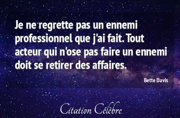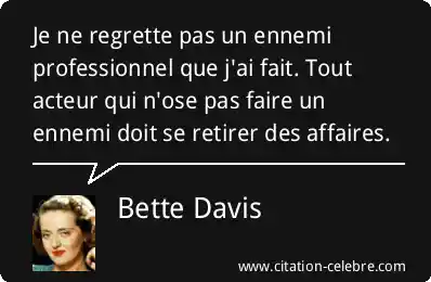 Je ne regrette pas un ennemi professionnel que j'ai fait. Tout acteur qui n'ose pas faire un ennemi doit se retirer des affaires.
