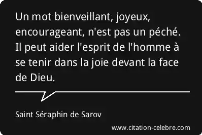 Un mot bienveillant, joyeux, encourageant, n'est pas un péché. Il peut aider l'esprit de l'homme à se tenir dans la joie devant la face de Dieu.