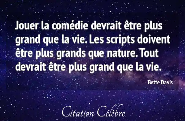 Jouer la comédie devrait être plus grand que la vie. Les scripts doivent être plus grands que nature. Tout devrait être plus grand que la vie.