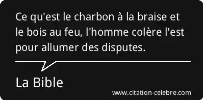 Ce qu'est le charbon à la braise et le bois au feu, l'homme colère l'est pour allumer des disputes.