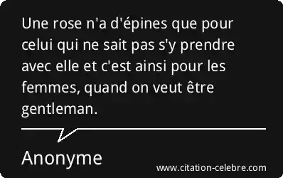 Une rose n'a d'épines que pour celui qui ne sait pas s'y prendre avec elle et c'est ainsi pour les femmes, quand on veut être gentleman.