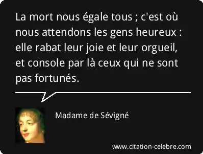 La mort nous égale tous ; c'est où nous attendons les gens heureux : elle rabat leur joie et leur orgueil, et console par là ceux qui ne sont pas fortunés.
