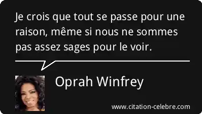 Je crois que tout se passe pour une raison, même si nous ne sommes pas assez sages pour le voir.