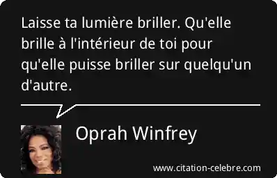 Laisse ta lumière briller. Qu'elle brille à l'intérieur de toi pour qu'elle puisse briller sur quelqu'un d'autre.