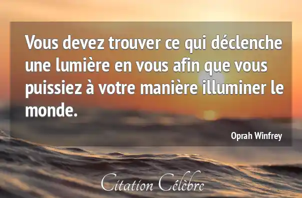 Vous devez trouver ce qui déclenche une lumière en vous afin que vous puissiez à votre manière illuminer le monde.