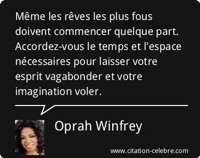 Même les rêves les plus fous doivent commencer quelque part. Accordez-vous le temps et l'espace nécessaires pour laisser votre esprit vagabonder et votre imagination voler.