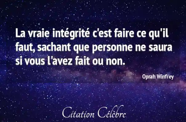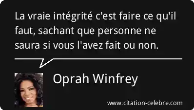 La vraie intégrité c'est faire ce qu'il faut, sachant que personne ne saura si vous l'avez fait ou non.