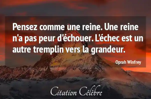 Pensez comme une reine. Une reine n'a pas peur d'échouer. L'échec est un autre tremplin vers la grandeur.