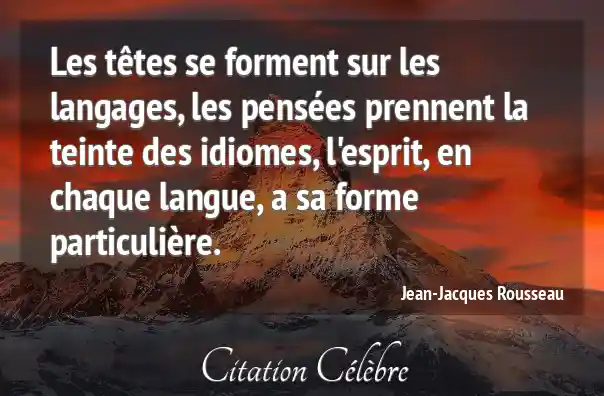 Les têtes se forment sur les langages, les pensées prennent la teinte des idiomes, l'esprit, en chaque langue, a sa forme particulière.