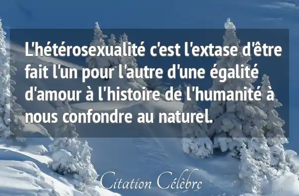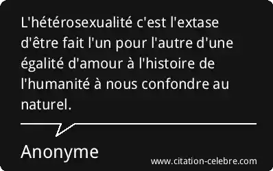 L'hétérosexualité c'est l'extase d'être fait l'un pour l'autre d'une égalité d'amour à l'histoire de l'humanité à nous confondre au naturel.