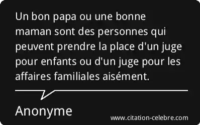 Un bon papa ou une bonne maman sont des personnes qui peuvent prendre la place d'un juge pour enfants ou d'un juge pour les affaires familiales aisément.