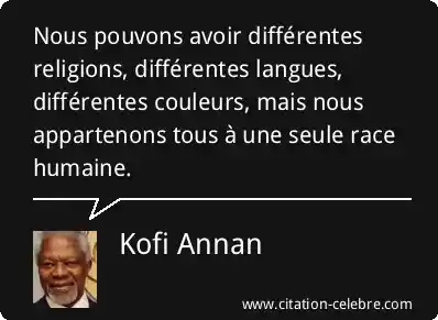 Nous pouvons avoir différentes religions, différentes langues, différentes couleurs, mais nous appartenons tous à une seule race humaine.