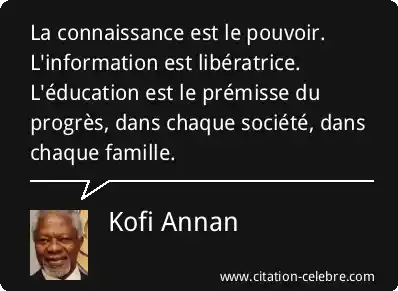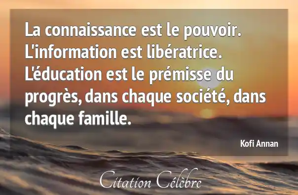 La connaissance est le pouvoir. L'information est libératrice. L'éducation est le prémisse du progrès, dans chaque société, dans chaque famille.