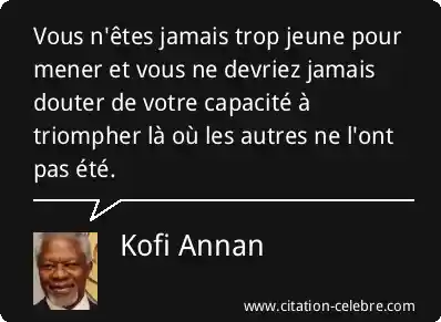 Vous n'êtes jamais trop jeune pour mener et vous ne devriez jamais douter de votre capacité à triompher là où les autres ne l'ont pas été.