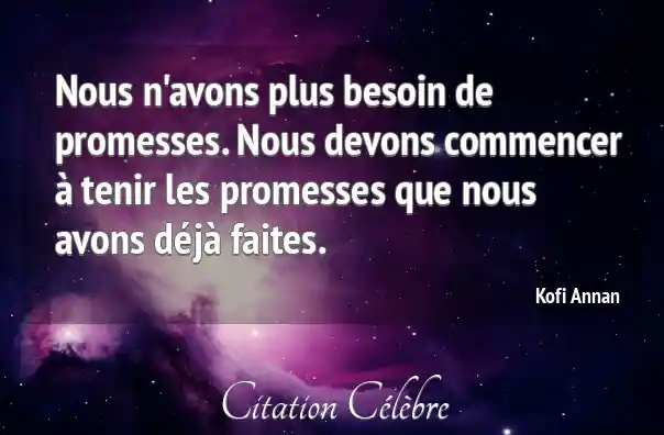 Nous n'avons plus besoin de promesses. Nous devons commencer à tenir les promesses que nous avons déjà faites.