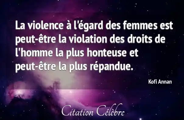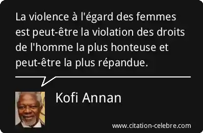 La violence à l'égard des femmes est peut-être la violation des droits de l'homme la plus honteuse et peut-être la plus répandue.