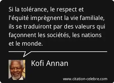 Si la tolérance, le respect et l'équité imprègnent la vie familiale, ils se traduiront par des valeurs qui façonnent les sociétés, les nations et le monde.