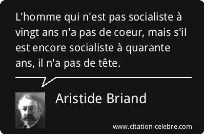 Bien qu'elle soit très souvent attribuée à Aristide Briand, l'attribution exacte de cette formule demeure incertaine. Il existe plusieurs variations (avec « libéral » ou « progressiste » à la place de « socialiste ») et l'on retrouve des sources qui l'attribuent à Benjamin Disraeli, à Winston Churchill, ou à d'autres figures politiques. La version avec « socialiste » est, en France, très solidement associée à Aristide Briand, un homme qui a lui-même eu un parcours politique complexe, passant du socialisme aux plus hautes fonctions de l'État.