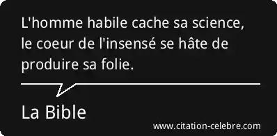 L'homme habile cache sa science, le coeur de l'insensé se hâte de produire sa folie.