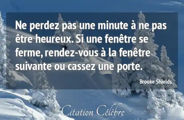 Ne perdez pas une minute à ne pas être heureux. Si une fenêtre se ferme, rendez-vous à la fenêtre suivante ou cassez une porte.