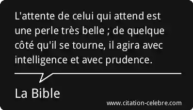 L'attente de celui qui attend est une perle très belle ; de quelque côté qu'il se tourne, il agira avec intelligence et avec prudence.