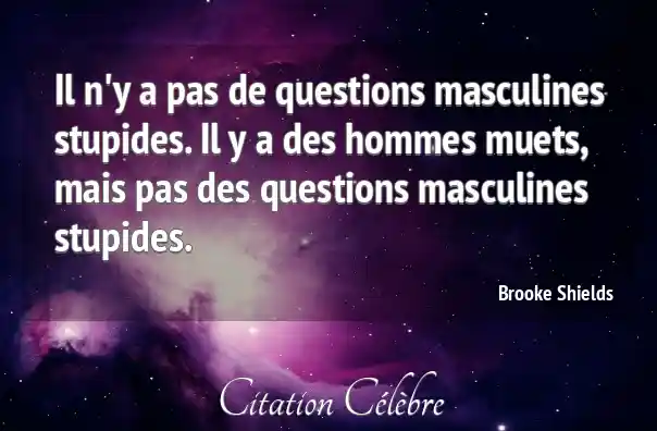 Il n'y a pas de questions masculines stupides. Il y a des hommes muets, mais pas des questions masculines stupides.