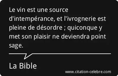 Le vin est une source d'intempérance, et l'ivrognerie est pleine de désordre ; quiconque y met son plaisir ne deviendra point sage.