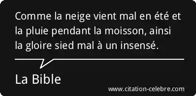 Comme la neige vient mal en été et la pluie pendant la moisson, ainsi la gloire sied mal à un insensé.