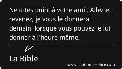 Ne dites point à votre ami : Allez et revenez, je vous le donnerai demain, lorsque vous pouvez le lui donner à l'heure même.