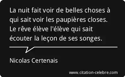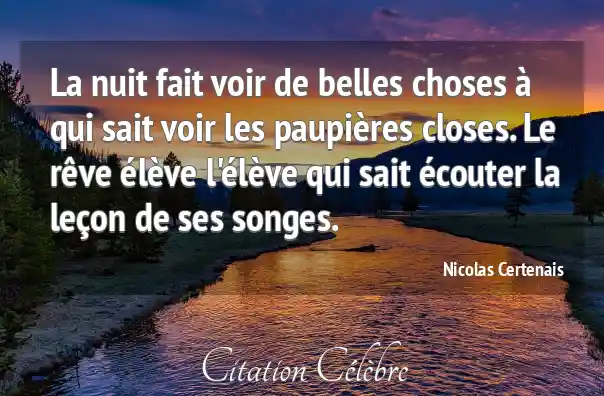 La nuit fait voir de belles choses à qui sait voir les paupières closes. Le rêve élève l'élève qui sait écouter la leçon de ses songes.