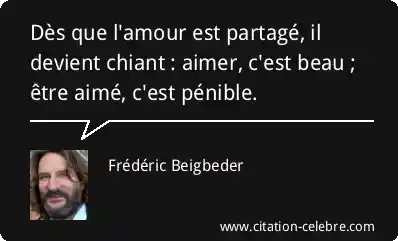 Dès que l'amour est partagé, il devient chiant : aimer, c'est beau ; être aimé, c'est pénible.