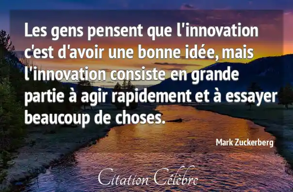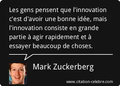 Les gens pensent que l'innovation c'est d'avoir une bonne idée, mais l'innovation consiste en grande partie à agir rapidement et à essayer beaucoup de choses.