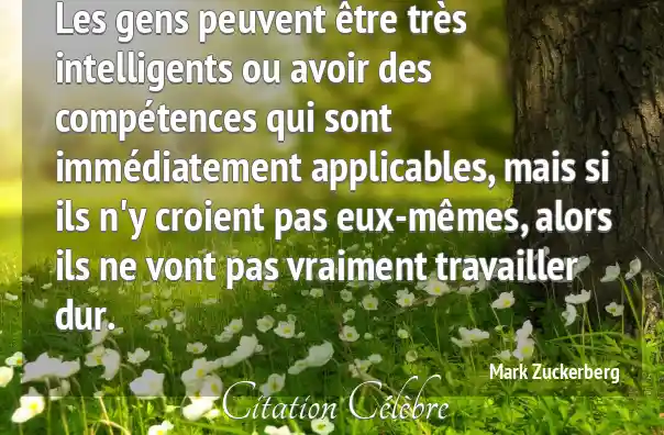Les gens peuvent être très intelligents ou avoir des compétences qui sont immédiatement applicables, mais si ils n'y croient pas eux-mêmes, alors ils ne vont pas vraiment travailler dur.