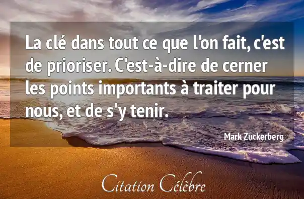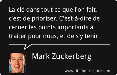 La clé dans tout ce que l'on fait, c'est de prioriser. C'est-à-dire de cerner les points importants à traiter pour nous, et de s'y tenir.