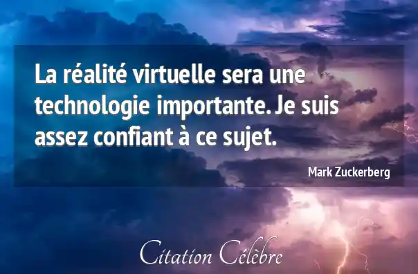 Citation Mark Zuckerberg technologie : La réalité virtuelle sera une technologie importante. Je suis assez...