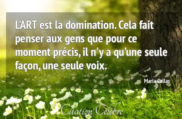 L'ART est la domination. Cela fait penser aux gens que pour ce moment précis, il n'y a qu'une seule façon, une seule voix.