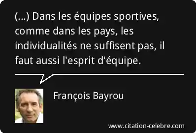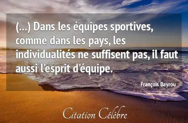 (...) Dans les équipes sportives, comme dans les pays, les individualités ne suffisent pas, il faut aussi l'esprit d'équipe.