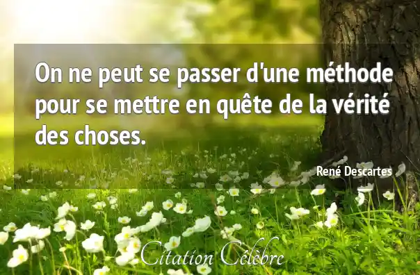 On ne peut se passer d'une méthode pour se mettre en quête de la vérité des choses.