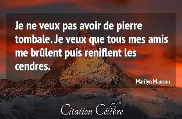 Je ne veux pas avoir de pierre tombale. Je veux que tous mes amis me brûlent puis reniflent les cendres.