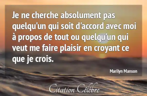 Je ne cherche absolument pas quelqu'un qui soit d'accord avec moi à propos de tout ou quelqu'un qui veut me faire plaisir en croyant ce que je crois.