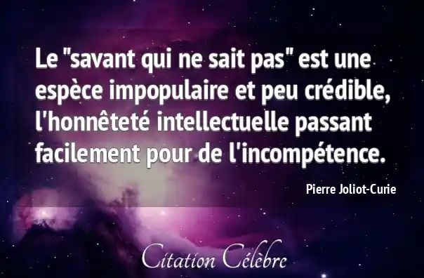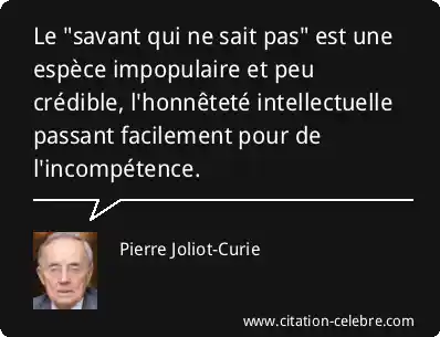 Le "savant qui ne sait pas" est une espèce impopulaire et peu crédible, l'honnêteté intellectuelle passant facilement pour de l'incompétence.