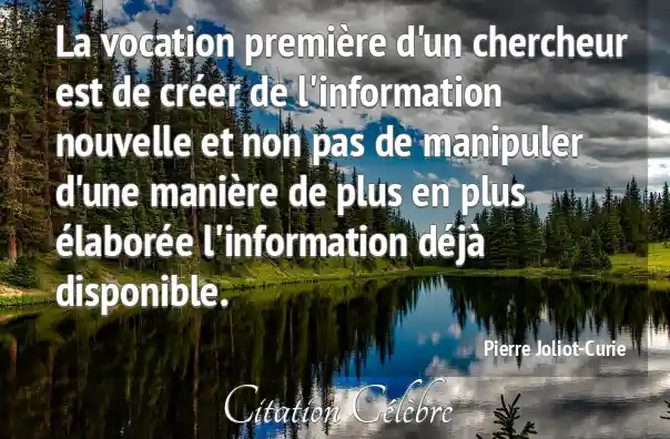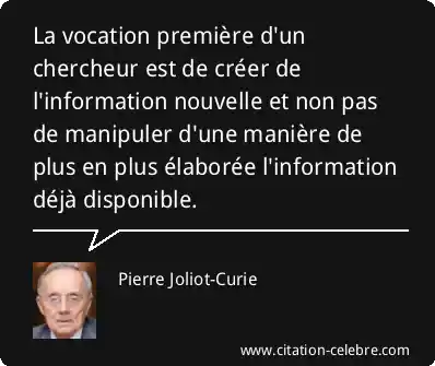 La vocation première d'un chercheur est de créer de l'information nouvelle et non pas de manipuler d'une manière de plus en plus élaborée l'information déjà disponible.