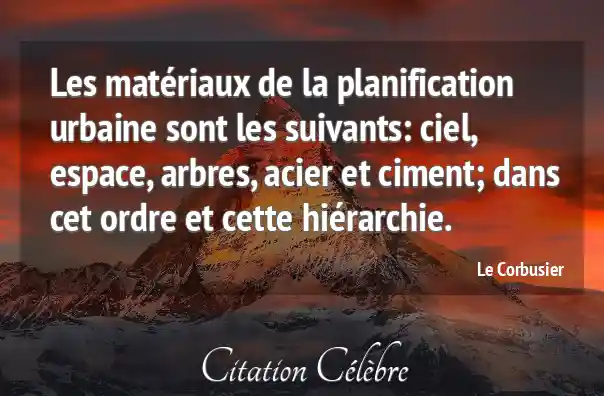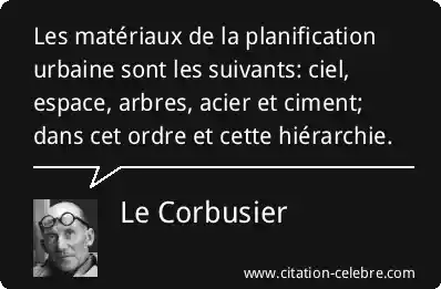 Les matériaux de la planification urbaine sont les suivants: ciel, espace, arbres, acier et ciment; dans cet ordre et cette hiérarchie.