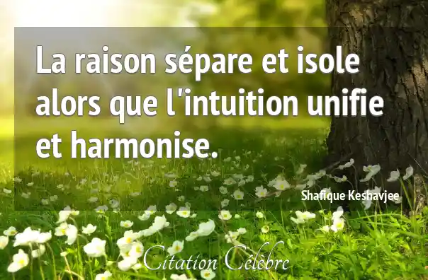 La raison sépare et isole alors que l'intuition unifie et harmonise.