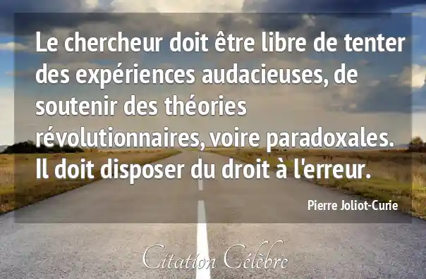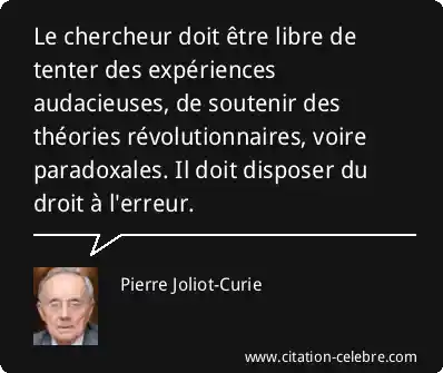 Le chercheur doit être libre de tenter des expériences audacieuses, de soutenir des théories révolutionnaires, voire paradoxales. Il doit disposer du droit à l'erreur.