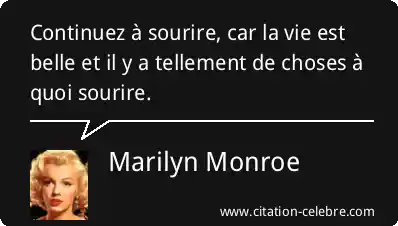 Continuez à sourire, car la vie est belle et il y a tellement de choses à quoi sourire.