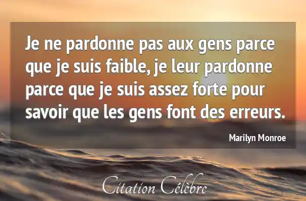 Je ne pardonne pas aux gens parce que je suis faible, je leur pardonne parce que je suis assez forte pour savoir que les gens font des erreurs.