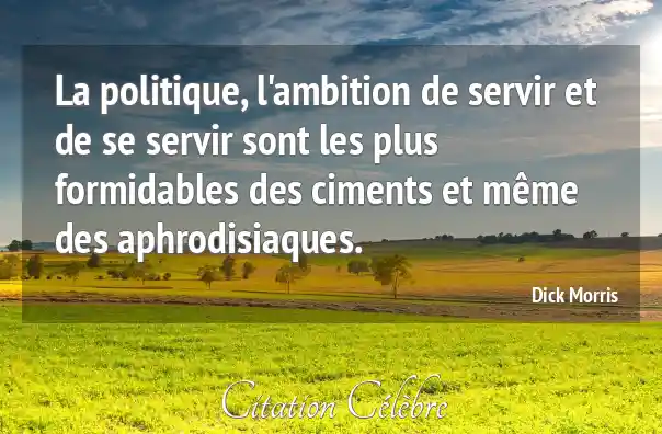La politique, l'ambition de servir et de se servir sont les plus formidables des ciments et même des aphrodisiaques.