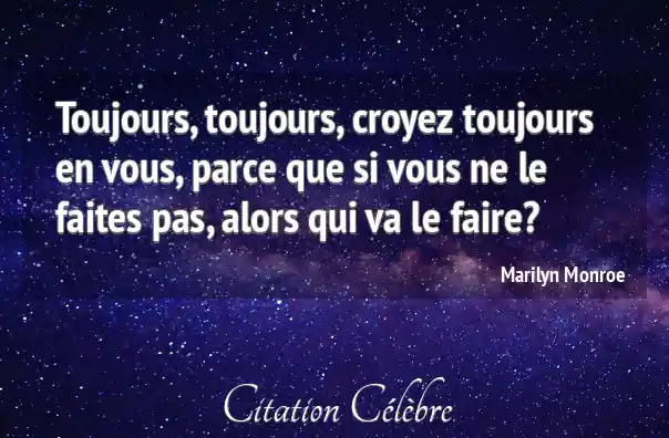 Toujours, toujours, croyez toujours en vous, parce que si vous ne le faites pas, alors qui va le faire?
